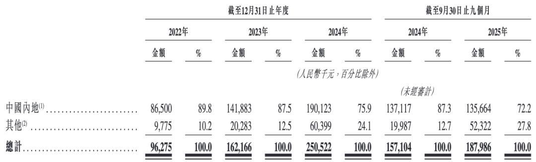 其大部分收益来自中国内地,随着全球化布局拓展,国外市场占比正在逐年提升,2024年中国市场占比75.9%,海外市场占比已达24.1%。